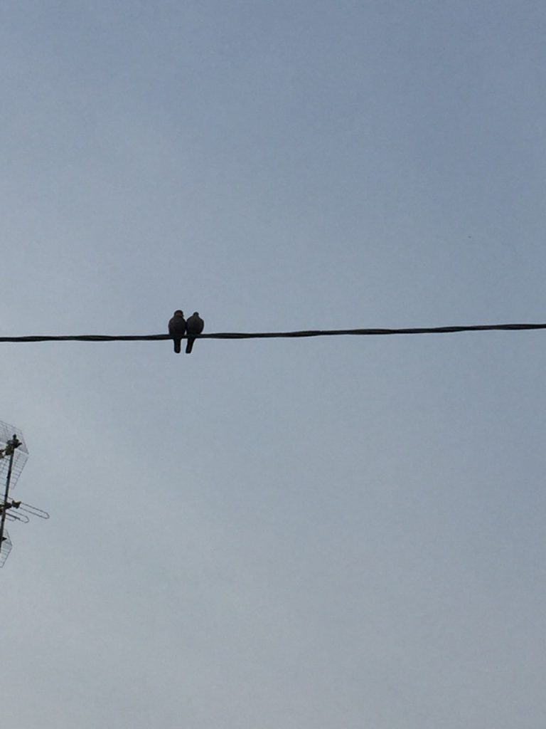 Quelli che si vedono in questa fotografia sono i protagonisti di Leo il piccione. Sono ritratti qui, fermi in un istante che sembra racchiudere tutta la loro storia: sguardi curiosi, ali pronte a partire e un silenzio che parla più di mille parole.
