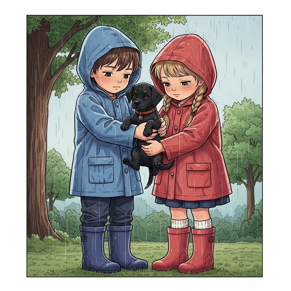 I due bambini si avvicinarono alla finestra e notarono subito il cucciolo abbandonato.